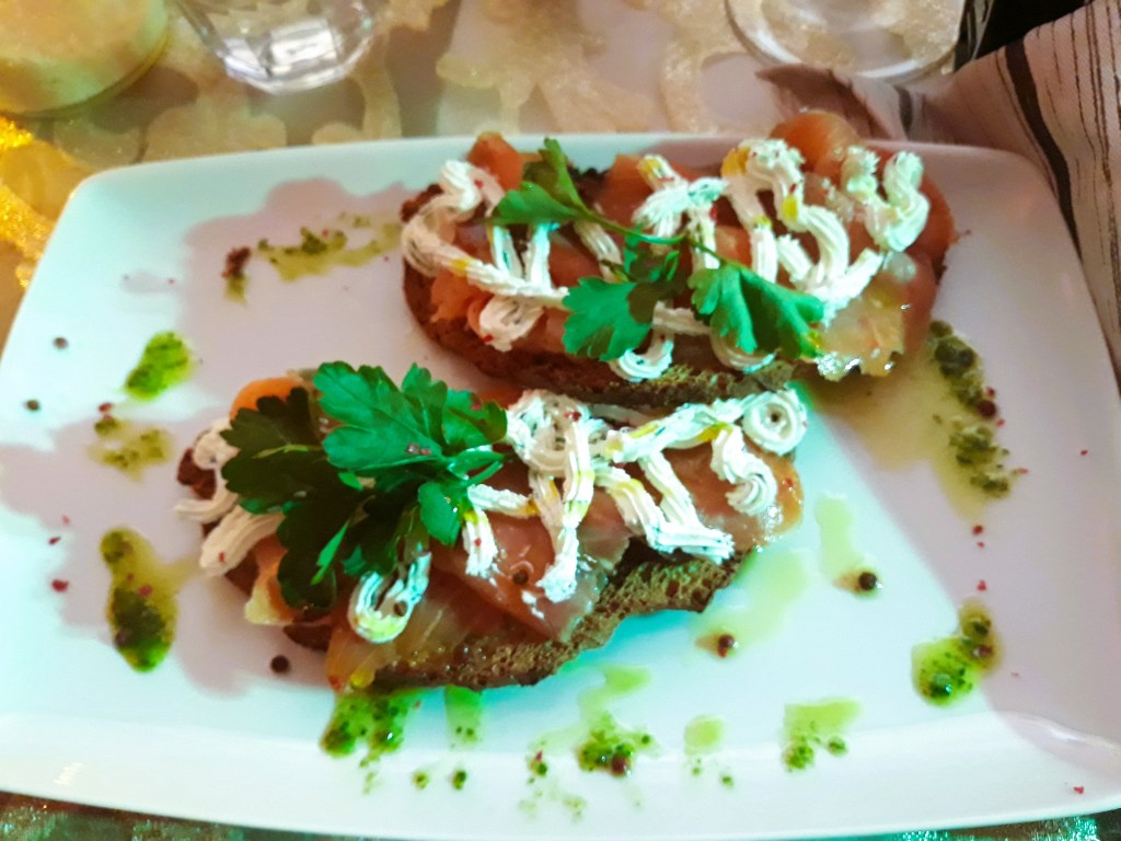 Their menu is generous and delicious – two things that we all love. I had a little bit of everything as I wanted to try a variety of dishes they had on offer. Starting with a bottle of some good chianti wine, I dipped into their tasty appetizer, a rustic bread with smoked salmon and something equivalent to ricotta and lemon on top.