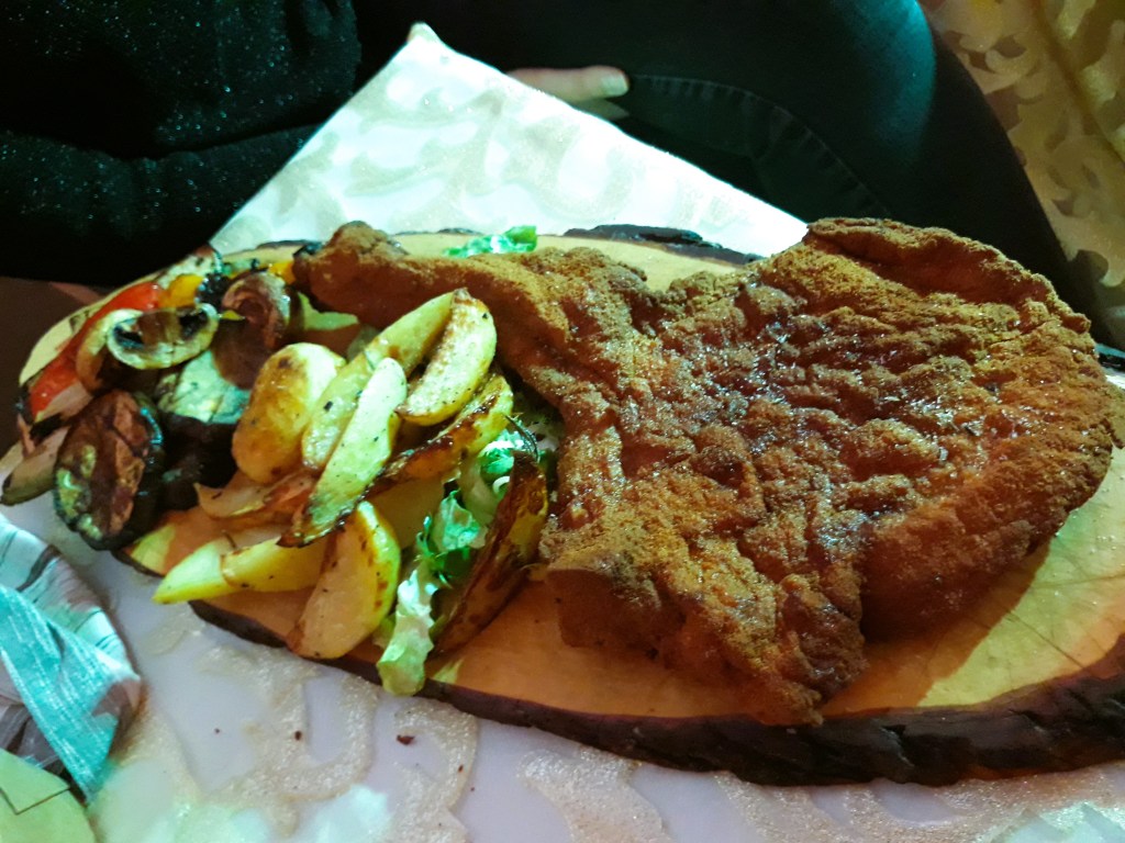 And finally, to complete the journey of food was a humungous breaded and fried piece of chicken breast with patate al forno and grilled vegetables on the side. The chicken was extremely well prepared and of course my go to – patate al forno – were absolutely scrumptious.
