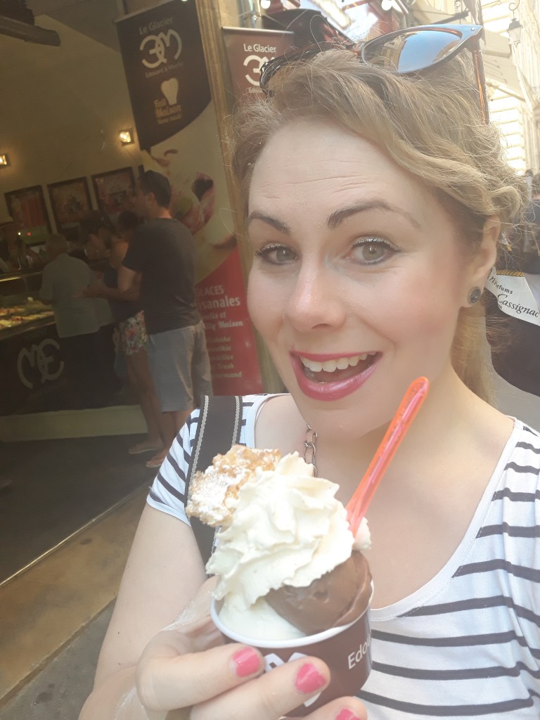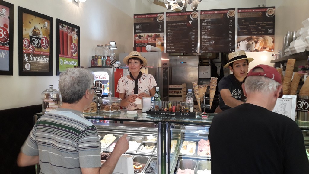 It’s so much fun walking around the center of a quaint and charming European town, but what’s even more fun is stopping in to a quaint and charming glacier shoppe where crêpes and sundaes are an all-day experience. I had the pleasure of popping in here on my second day in Aix-en-Provence, and was charmed by the couple who own the shoppe, and also by the delicious crêpes and ice cream they serve here.