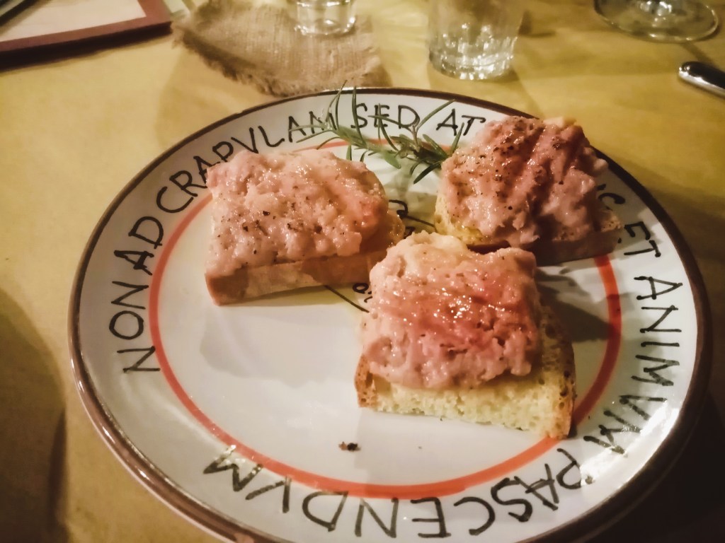 Of course the food is the reason we’re here. It was most certainly the best part of the experience, in combination with the atmosphere. The owner, Nicola, was there to greet me when I arrived and served myself and the other few patrons that can fit in his humble establishment. Perusing the small menu, everything sounded great, and most fascinating was that these were medieval dishes that Nicola had brought back to life.