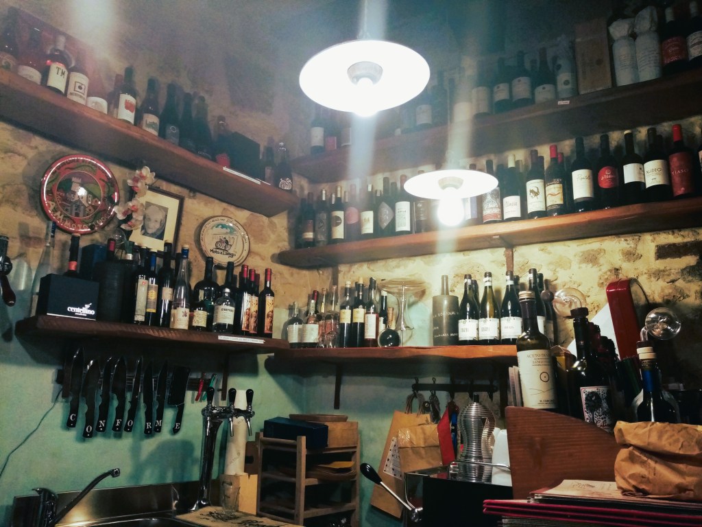And the osteria is really no different. With its medieval décor and esthetics, it’s quite literally like being transported in time with the stone walls, antique knick knacks that grace the walls – and of course, all the many wines that are available upon selection.