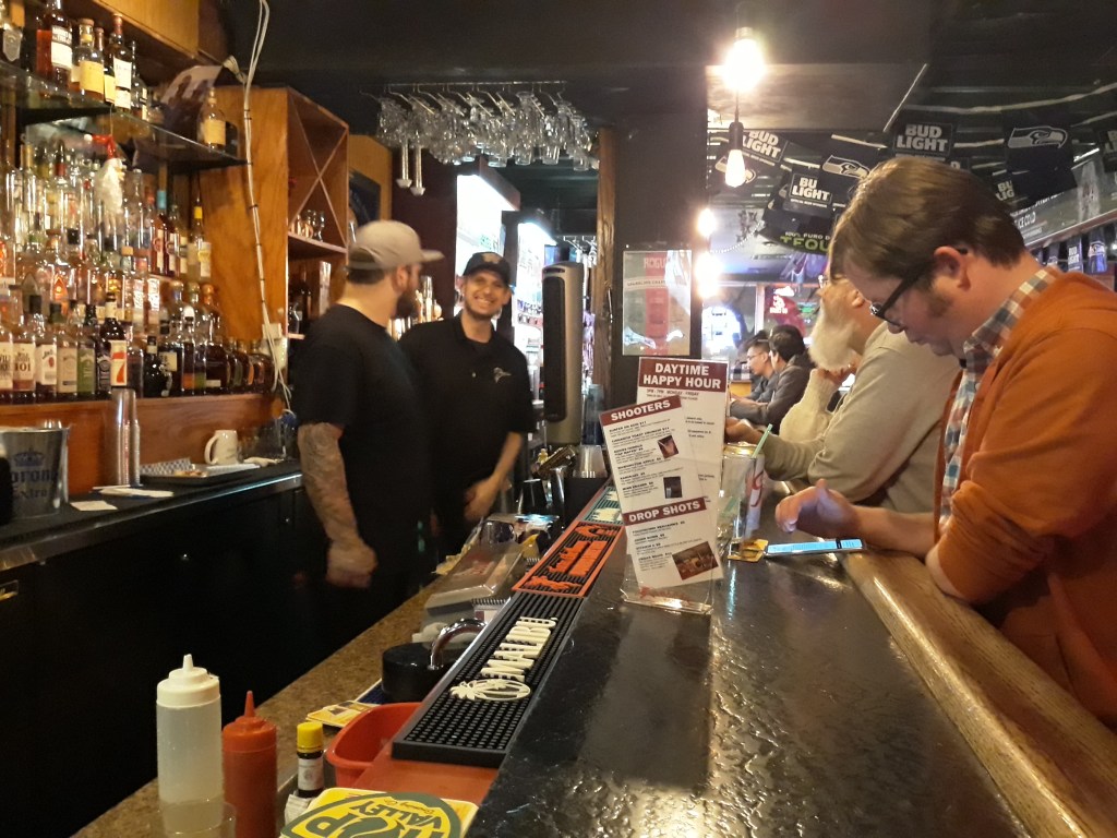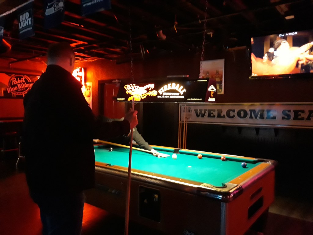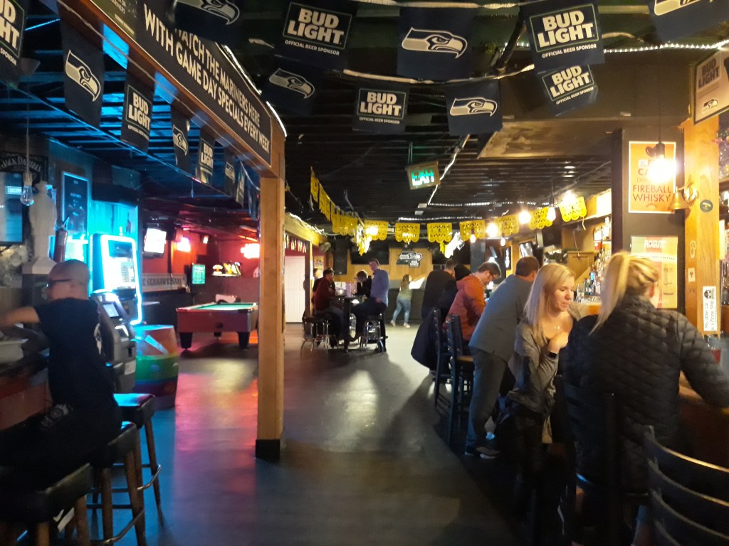 The bar is quite large, offering an area for cocktails and other alcoholic beverages, pool tables, darts, booths for sitting and more. The staff is hospitable and friendly – perhaps not always the case in Seattle (I get to say that since I was born here); and while there may not be a huge list of items on their food menu, there is still tasty bar grub.