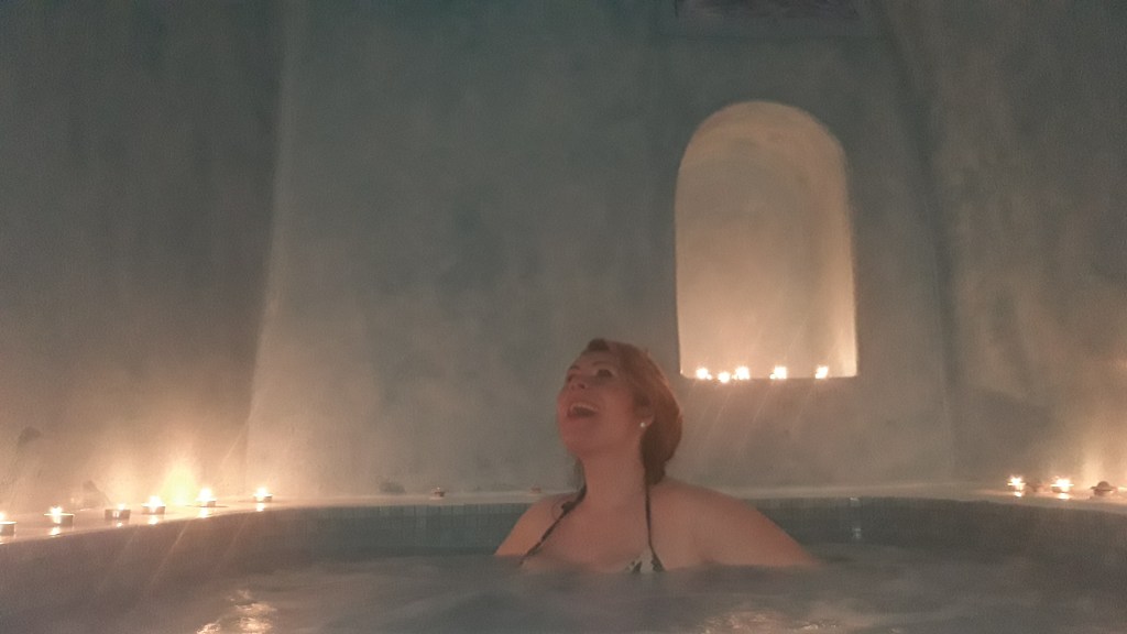 Yes, it’s a cave-like experience, right in the very center of Oia, Santorini – one of the world’s biggest tourist destinations – you’re time here will feel magical and surreal. With an indoor hot tub bigger than any I’ve ever seen, indoor or outdoor for that matter, you can light candles around the tub, which has illuminated lights overhead which turn on automatically once the sun goes down.