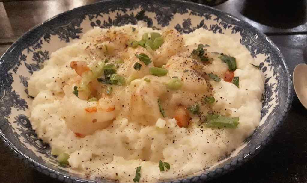 What Beth prepared for me that evening wasn’t necessarily what is always on the menu. She likes to “spice things up” if I may use the pun, changing her menu frequently to offer a different selection of dishes. Her most popular dish though is her shrimp and grits. In addition, a frequently requested entrée is her fried chicken and biscuits. And she’s also known for her pimento cheese, bread pudding and chicken pot pie! All things I think I’m going to be needing to try the next time I’m in town. And why is that bread pudding so spankin’ famous? Because it is apparently unlike any other bread pudding one has ever had. Not soggy and at all and with no raisins. It is a croissant in a classic custard and baked in a bourbon sauce with spiced pecans.