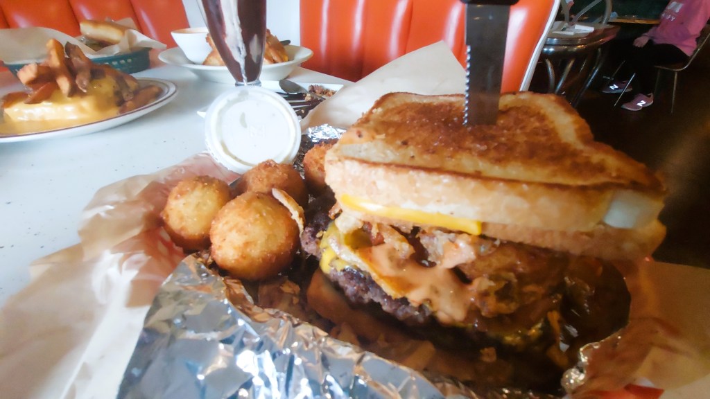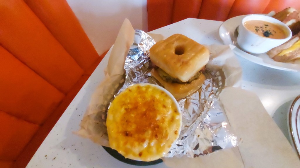 And yes, while all of their food is perfect for those wanting to audition for TLC’s most popular television series, the real destroyer is their signature dish: The Donut Burger. What is a donut burger, you may ask? It’s just what it sounds like. A half-pound burger (with cheese) wedged between two square glazed donuts. It might sound amazing. And that’s because it is. I took one bite and needed a cardiologist, though. The burger will send you into a brain tizzy of delight, and that’s its purpose.