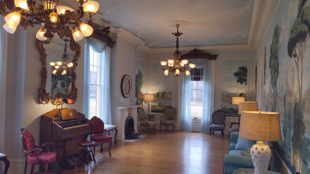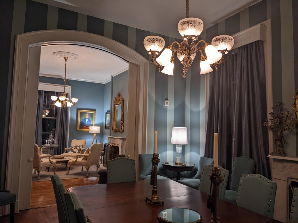 “The neighborhood the mansion is in, is a great place to walk, as there are many historic homes in this district. About 3 blocks west takes you to Duncan Park, which has the first governor of Illinois’ mansion and now a beautiful park with picnic tables and amenities for families with kids’ swings and such, The neighborhood is very quiet and secure, so all our guests get great sleep, and enjoy walking in the neighborhood. The town square is also just a 4 block walk from the mansion.”