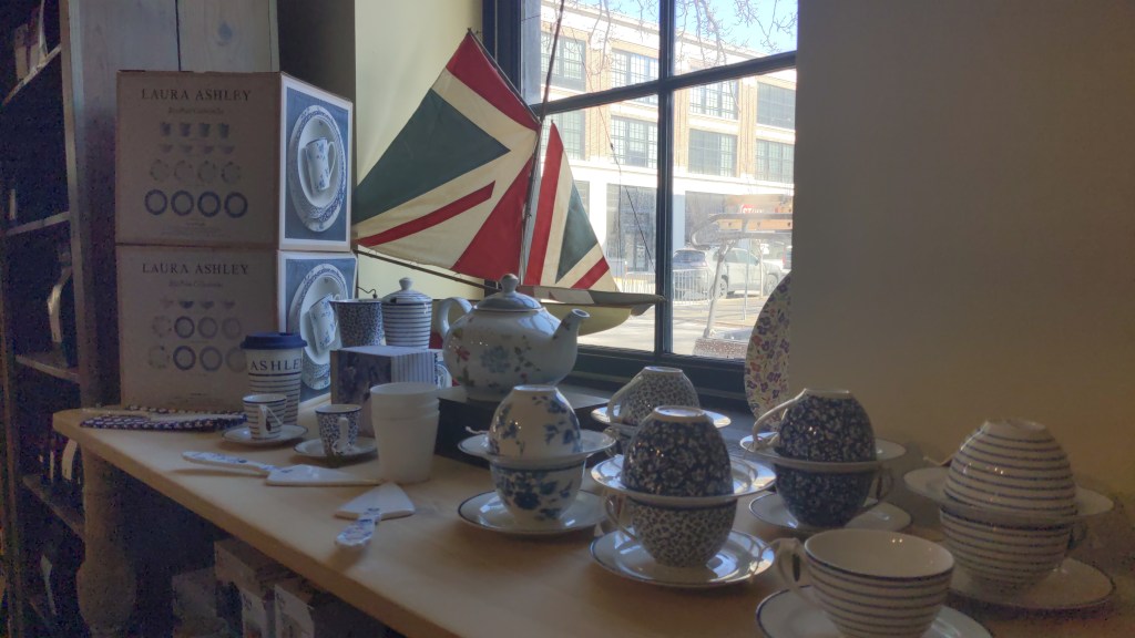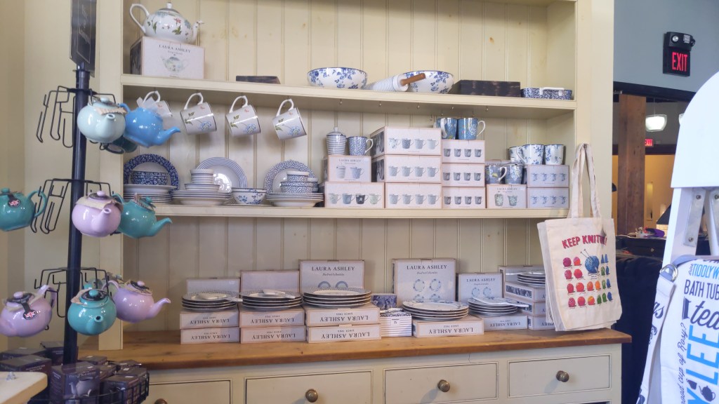 I went home with one of their candles (made by Jackie’s mother, who has her own candle company), and the scent is out of this world. But it’s not just candles that they sell. Obviously they sell their popular loose leaf tea, and in addition they also have Laura Ashley tableware, Burleigh cups and saucers, and items from designer Victoria Eggs. They also offera variety of mugs and other gifts for the inclined shopper.
