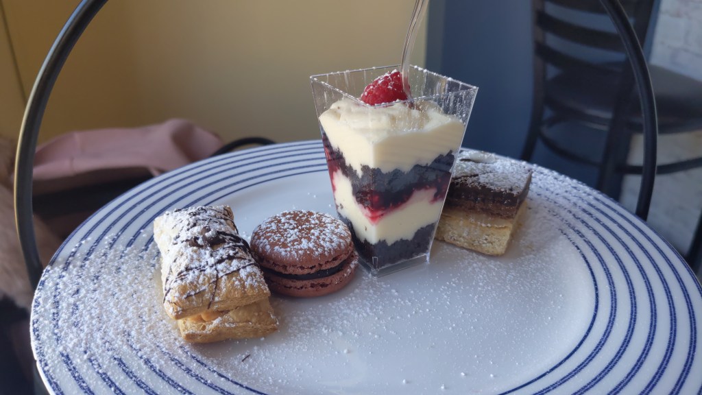 I had a blast here! In some ways it was like getting to play dress up and have a tea party all by myself, with people serving me – which made it all the more fun. I had the pleasure of getting to try 4 different teas, my favorite of which might just have been the first, which just so happens to be their most popular tea on the menu – The Naughty Vicar. I know, what cheeky British humor. But the fact remains, this is a killer tea. And to boot, it’s a black tea, and I am not a huge fan of black teas. This ‘Naughty Vicar’ though might just turn me around to them.