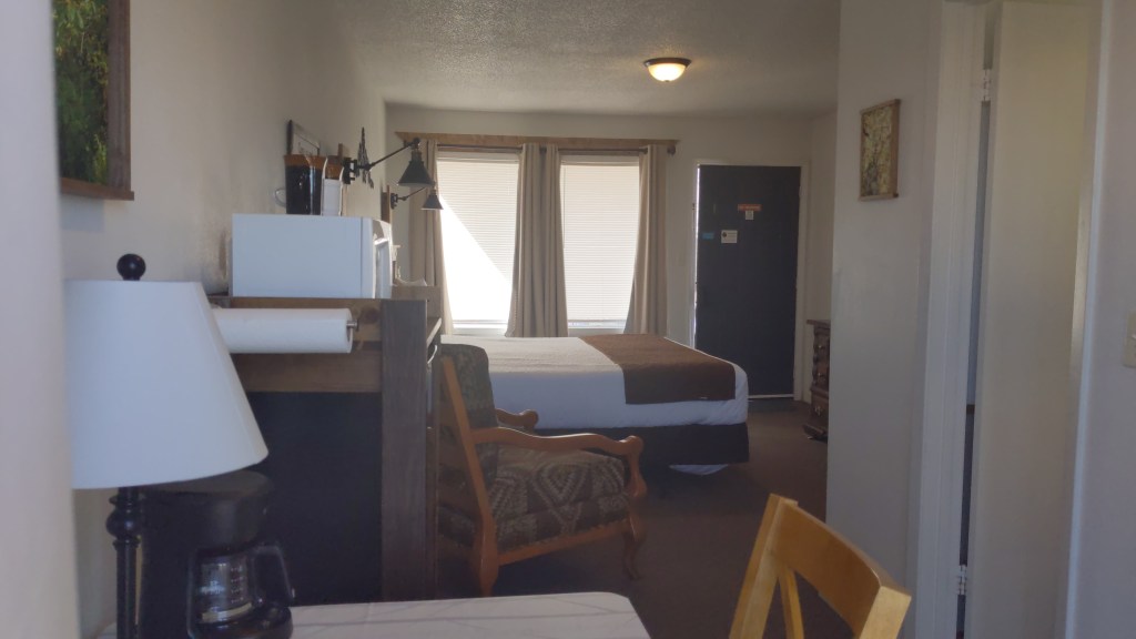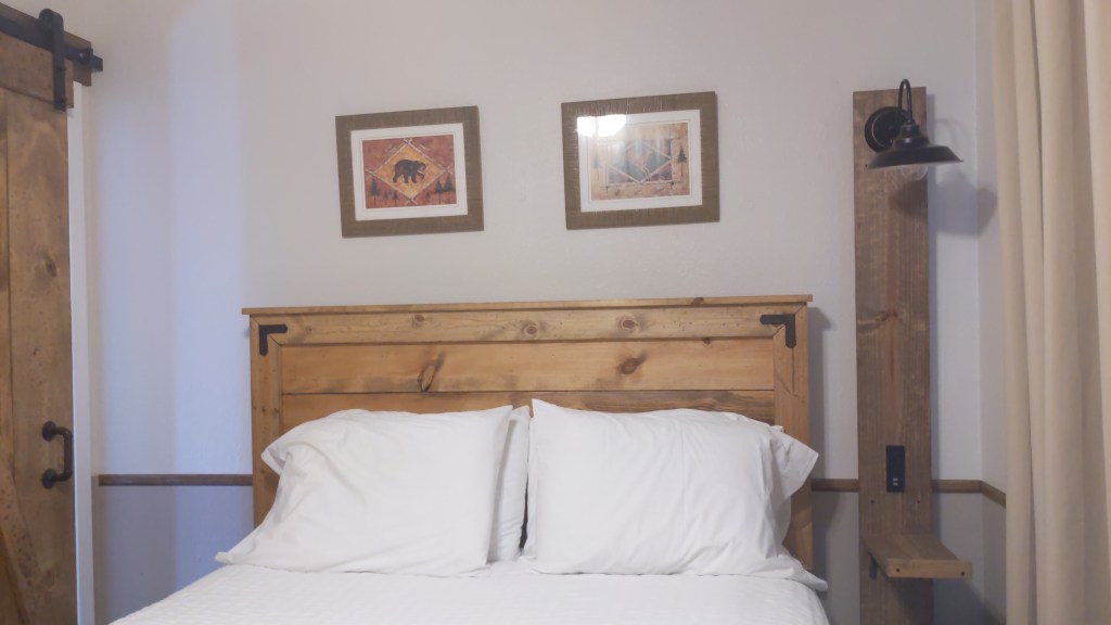 For those who are not staying in an RV, or some who may be traveling with the owners of an RV but there isn’t enough room for their guests to sleep inside – well you can choose from one of their cozy cabins or spend the night in the motel room – which is really closer to the standards of a hotel room. I got to try out both, and let me tell you, they’re both fantastic!